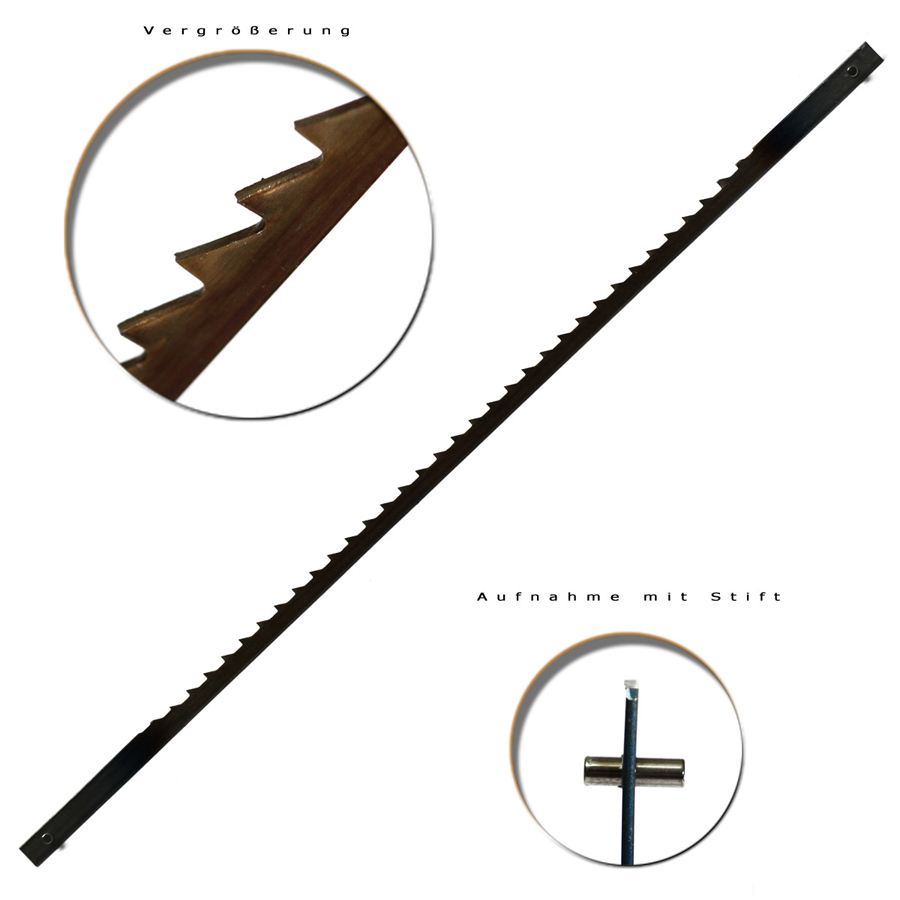 Hochwertige Dekupiersägeblätter mit Stiftbefestigung. Optimale Leistung an allen Maschinen mit Standard Aufnahme.