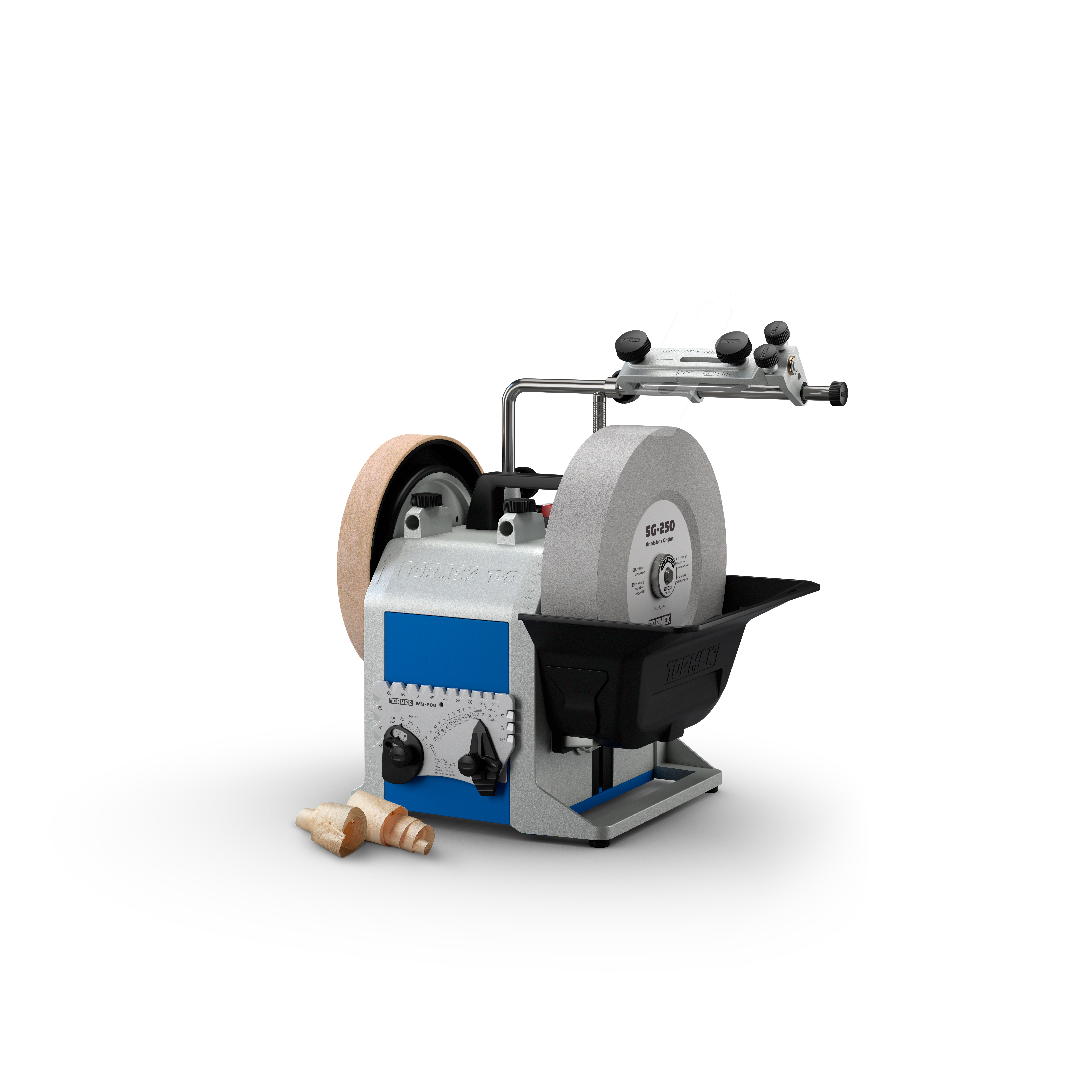 Die Tormek T-8 ist mit dem Originalschleifstein SG-250 ausgestattet, der wahlweise mit 220er oder 1000er Körnung betrieben werden kann und alle Stahlarten schleifen kann, sogar HSS-Stahl. Das spezielle Tormek Antriebssystem garantiert jahrelang leisen, zuverlässigen Betrieb. Das effiziente System hält dank seines speziellen Treibrads sogar unter Volllast immer die optimale Geschwindigkeit für wassergekühltes Schleifen bei. Der Wechselstrom-Industriemotor ist wartungsfrei und für den Dauerbetrieb der normal großen Schleifscheibe ausgelegt. Der Motor ist auf eine Lebensdauer von 25 000 Stunden ausgelegt.
