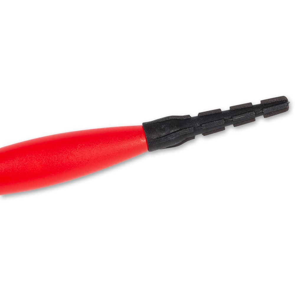 Auf der gegenüberliegenden Seite kann der Leim durch das flexible, flachere Ende mühelos in einen dafür passenden Schlitz oder Nut verteilt werden.