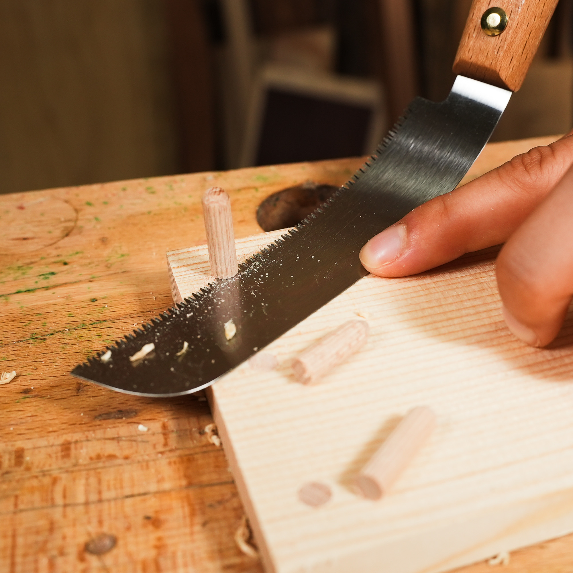 Eine kleine Säge, die traditionell in der japanischen Tischlerei zum bündigen Beschneiden hervorstehender Holz- oder Bambusdübel verwendet wird.