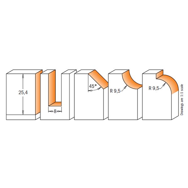 CMT Profilfräser-Set, 5-teilig, S = 8 mm