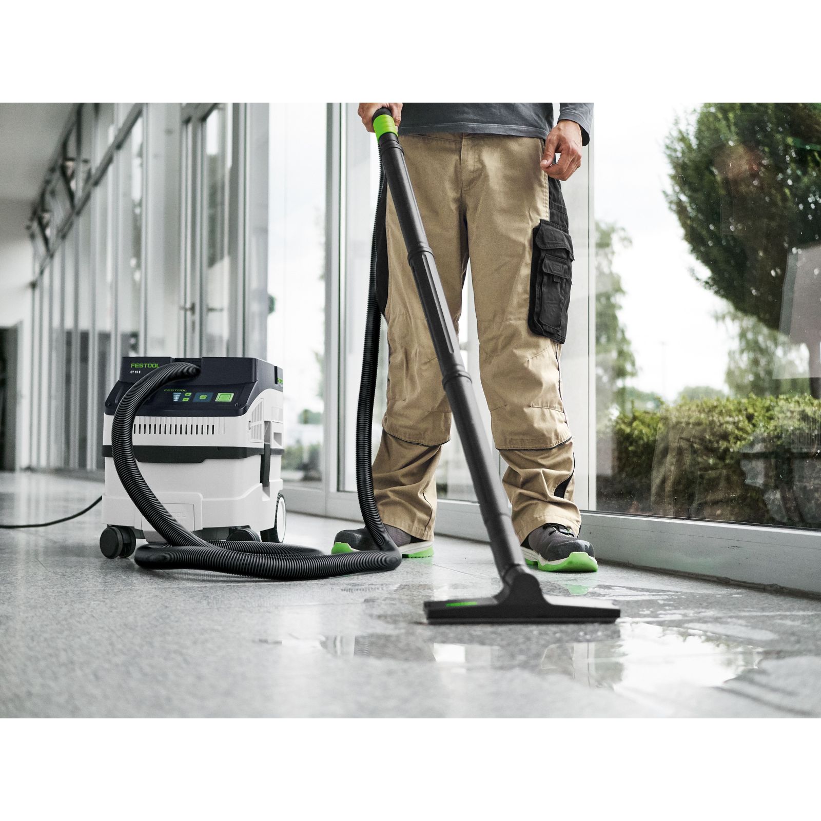 Ideal zur Reinigung auf Baustellen, in Werkstätten sowie Büros: Mit 15 l Behältervolumen saugt der CLEANTEC CT 15 Staub, Schmutz und Wasser. Dank seiner Bauform lässt sich das Behältervolumen vollständig ausnutzen – für langes Arbeiten ohne Filtersackwechsel.