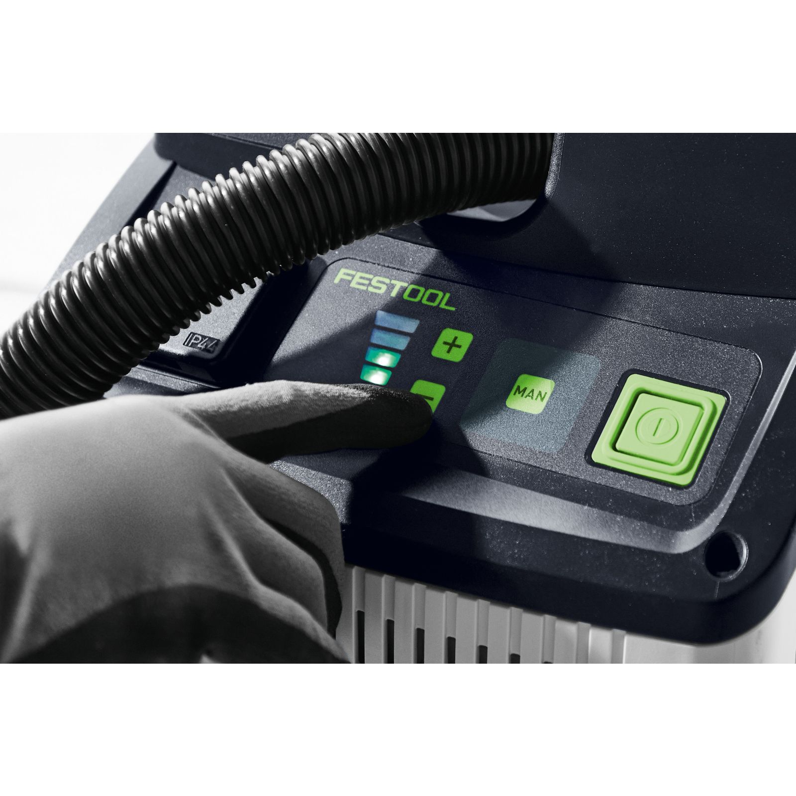 - Regulierbar: Saugkraftregulierung in fünf Stufen