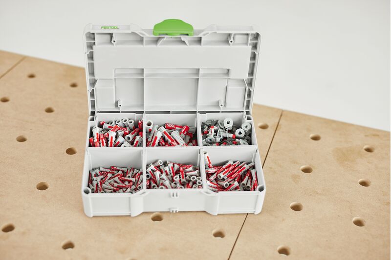 Mit dem Dübel-Set im Systainer³ S seid ihr bestens vorbereitet für verschiedenste Anwendungen in allen Baustoffen. Das Set besteht aus hochwertigen DuoPower Dübeln in den Durchmessern 5, 6, 8 und 10 sowie Gipskartondübel 6 x 35 - alles ordentlich verstaut und sicher aufbewahrt im handlichen Mini-Systainer³ S 76. Und auch noch mobil: Mit dem Systainer³ Rack kann euer Zubehör-Systainer auch in die bott vario3 Fahrzeugeinrichtung integriert werden.