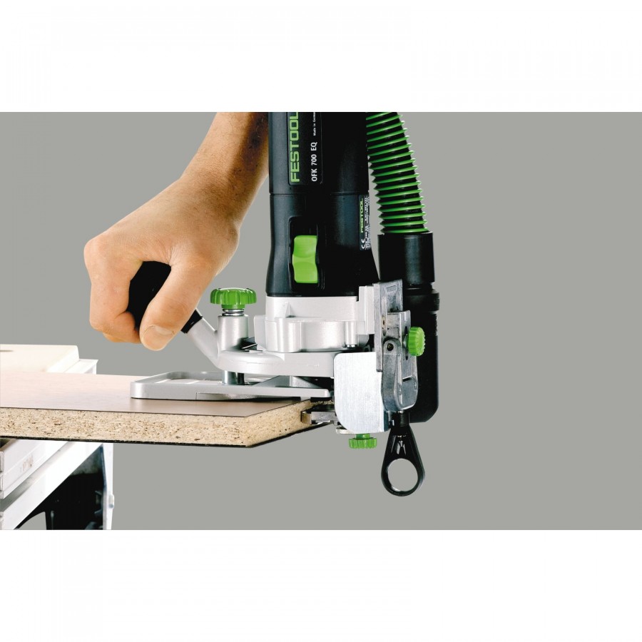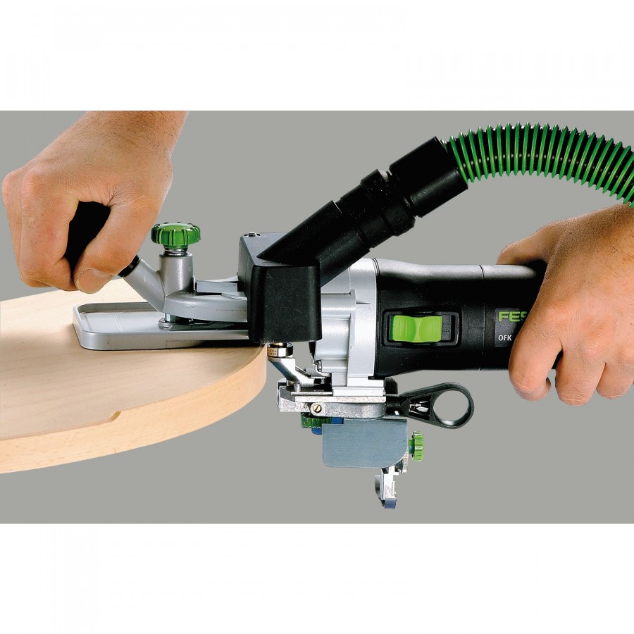 Auf Geraden wie in Kurven überzeugend: Die Kantenfräse OFK 700 ist das Multitalent unter den Kantenfräsen. Sie macht das Bündigfräsen von Kanten- und Flächenüberständen einfach möglich – egal, ob das Werkstück klein oder groß ist, die Kanten geschwungen oder gerade sind. Der große, rasch umsteckbare Frästisch gewährleistet in jeder Arbeitsposition eine stabile Auflagefläche und sichere Führung der Maschine.