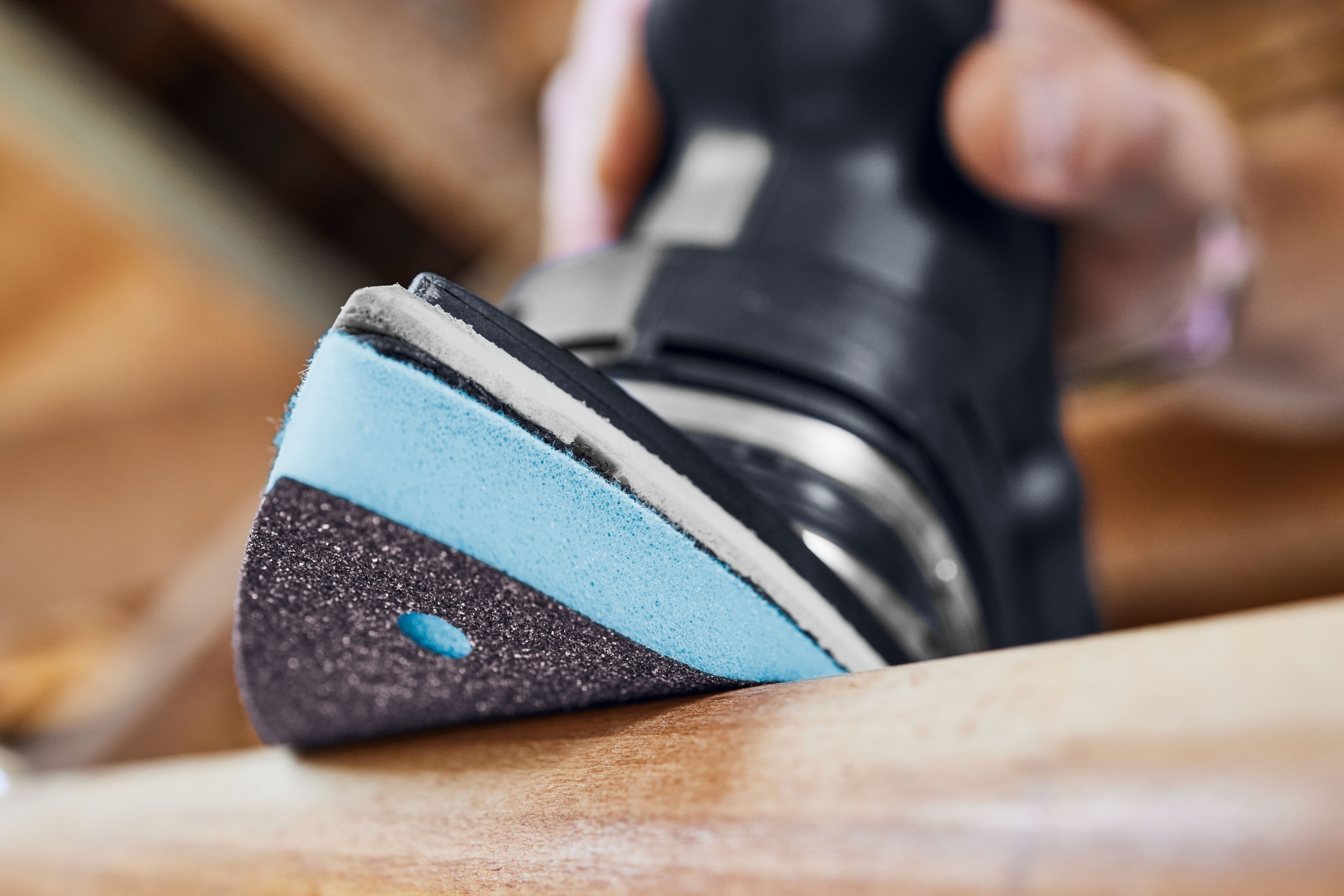Das neue Softschleifmittel wurde für den maschinellen Profilschliff entwickelt, für besonders glatte und gleichmäßige Schleifergebnisse auch auf schwer zu bearbeitenden Flächen - in einem praktischen Vorratspack erhältlich. Dank der soften Beschaffenheit passt es sich perfekt an die Oberfläche des Werkstückes an und sorgt für eine optimale Druckverteilung - inklusive passendem Lochbild zur Staubabsaugung für ein sauberes Schleifen im Festool System.