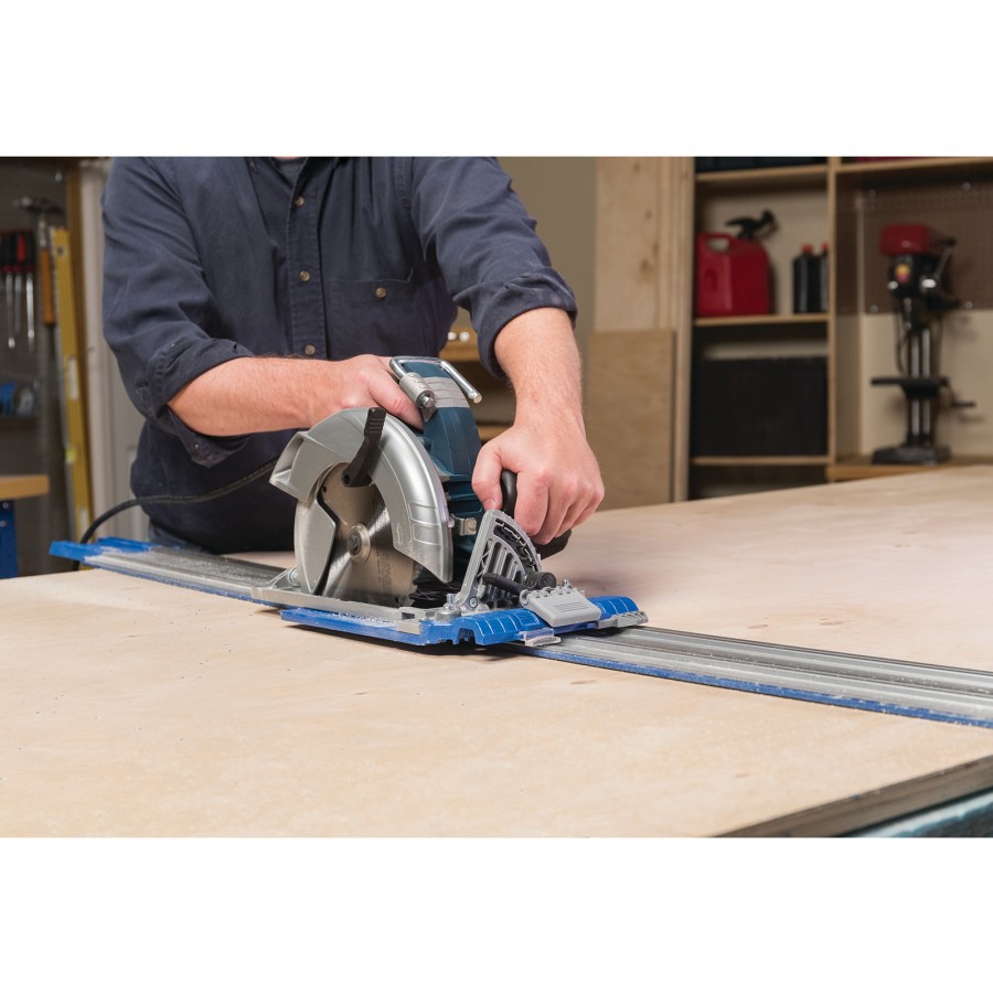 - Richten Sie die Führungsschiene einfach an Ihren Markierungen aus, um genaue Schnitte zu erzielen