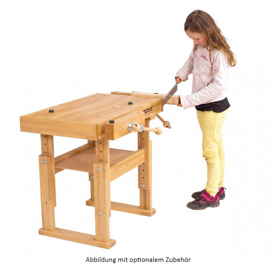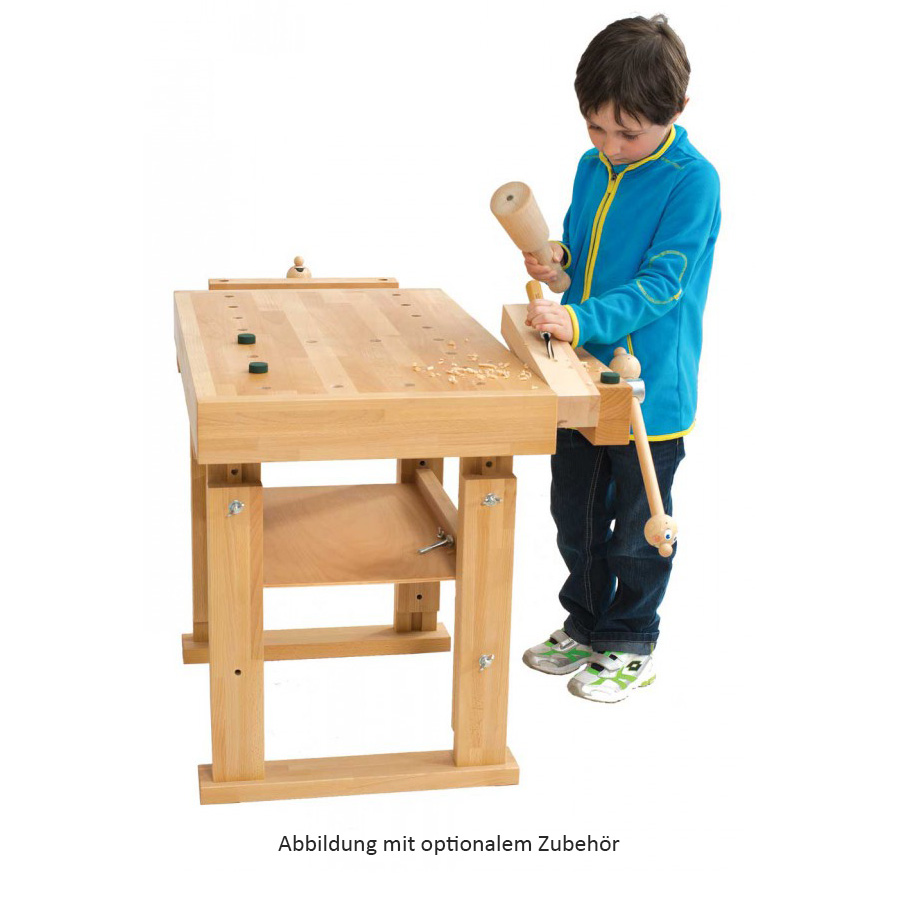 Mit den Hobelbänken der Kids Serie werden auch die Kleinsten gut bedient. Sie werden aus Buchensperrholz gefertigt und bieten die perfekte Oberfläche zum spielen, lernen oder basteln. Dank der verstellbaren Arbeitshöhe, wächst die Werkbank mit Ihrem Kind mit. Die niedrigste Arbeitshöhe ist 620 mm und somit optimal für Kinder zwischen 3 und 5 Jahren. In jeweils 50mm Schritten, kann die Hobelbank bis auf 770 mm angehoben werden. Durch diese Möglichkeit, können die Werkbänke der Kids Serie über viele Jahre hinweg Spaß bereiten.