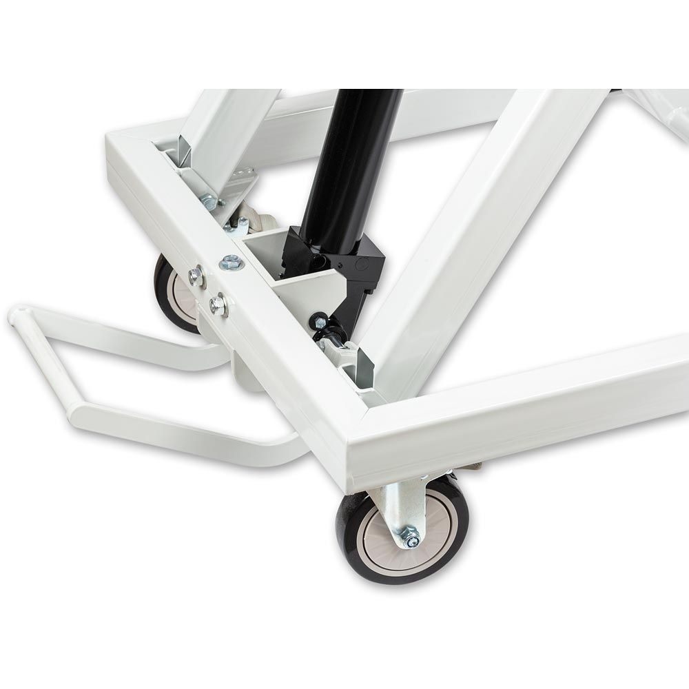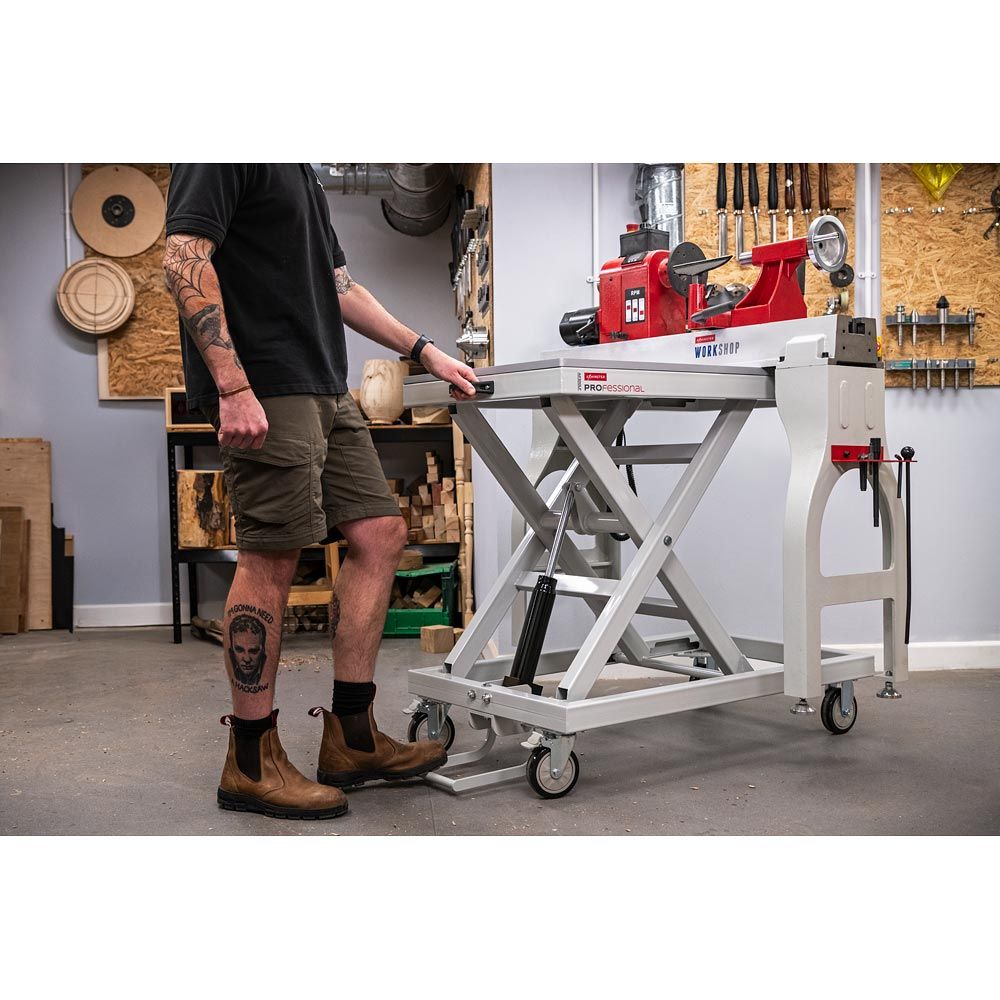 Dieser mobile Hubtisch bietet eine großzügige Arbeitsfläche für vielfältige Anwendungsmöglichkeiten und Projekte. DIe 18 mm starke Platte misst 1100 x 600 mm mit einer Tragfähigkeit von bis zu 300 kg. Dank der rutschfesten Oberfläche und wasserfesten Beschichtung ist dieses Tool an jedem Ort sofort einsatzbereit. Zwei gebremste Räder sorgen für eine zusätzliche Stabilität.