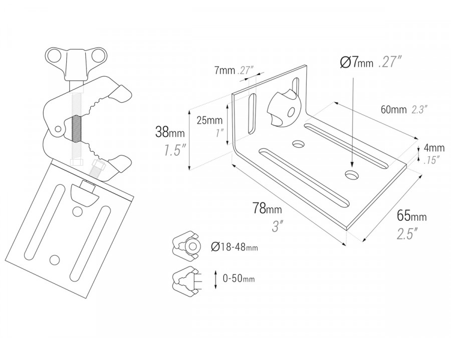 - Zahlreiche Befestigungsoptionen für Schrauben bzw. Muttern M6, M8 und W 1/4"
