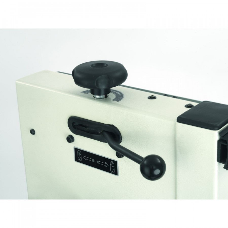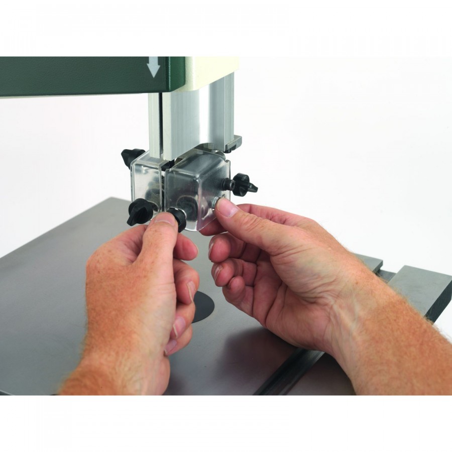 Werkzeugloses einstellen der Bandführung mit dem gefederten Kugellager System. Einhandbedienung.