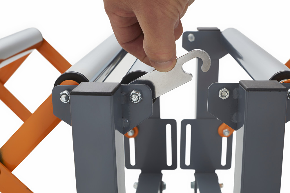 Die stabile Förderrolle ist vielseitig einsetzbar und in der Höhe, Länge und Form einstellbar. Dieses Zubehörteil mit Doppelfunktion kann sowohl als tragbarer Auslauftisch als auch als Rollwagen zum Transport großer oder schwerer Materialien in der Werkstatt verwendet werden. Durch die feststellbaren Rollen lässt sich die Rollenbahn leicht an den gewünschten Ort bewegen und arretieren.