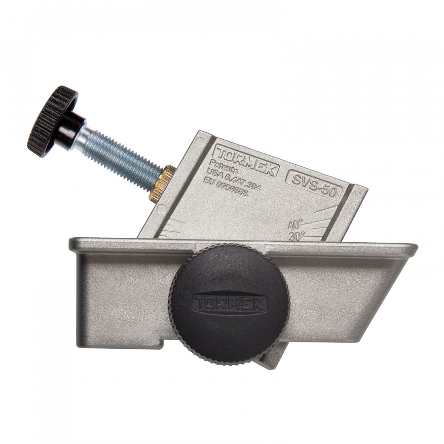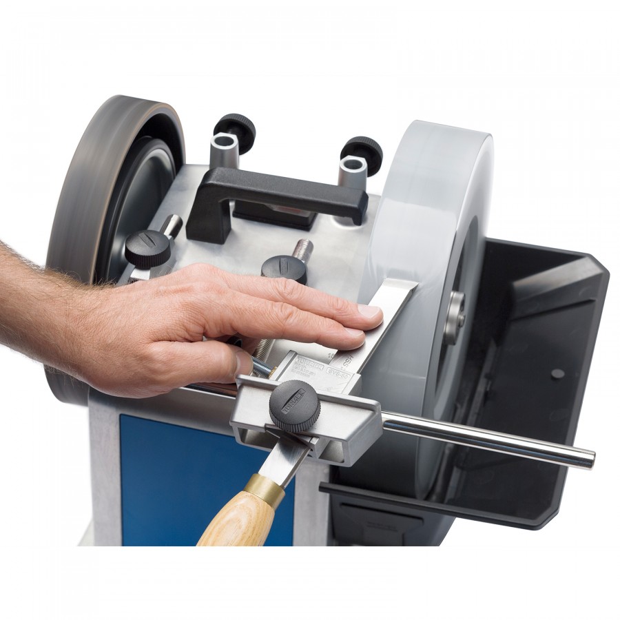Zum Schleifen von Drechselwerkzeugen empfehlen wir ausdrücklich die Verwendung der Vorrichtung SVS-50 in Kombination mit der TTS-100 Einstelllehre für Drehstähle. Auf diese Weise können Sie immer wieder die Form und den Schneidenwinkel exakt reproduzieren. Das spart zusätzlich Zeit, da bei jedem Schleifvorgang nur eine minimale Materialmenge abgetragen wird.