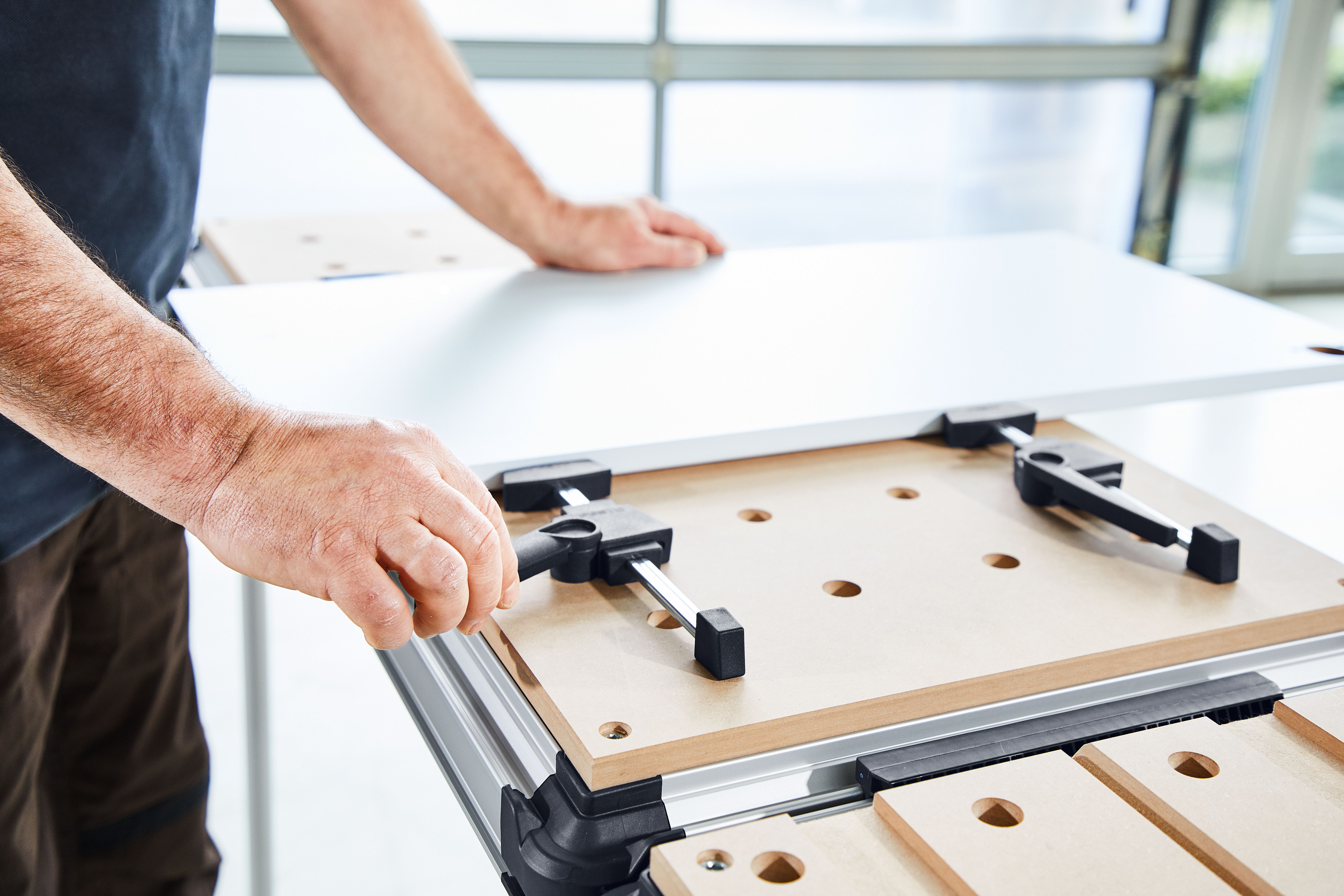 Die Spannelemente MFT-SP bieten runden und eckigen Werkstücken sicheren Halt ohne Verrutschen. Durch die Kompatibilität mit der MFT-Lochung können sie auf einem Multifunktionstisch oder der Mobilen Werkstatt einfach angebracht werden.