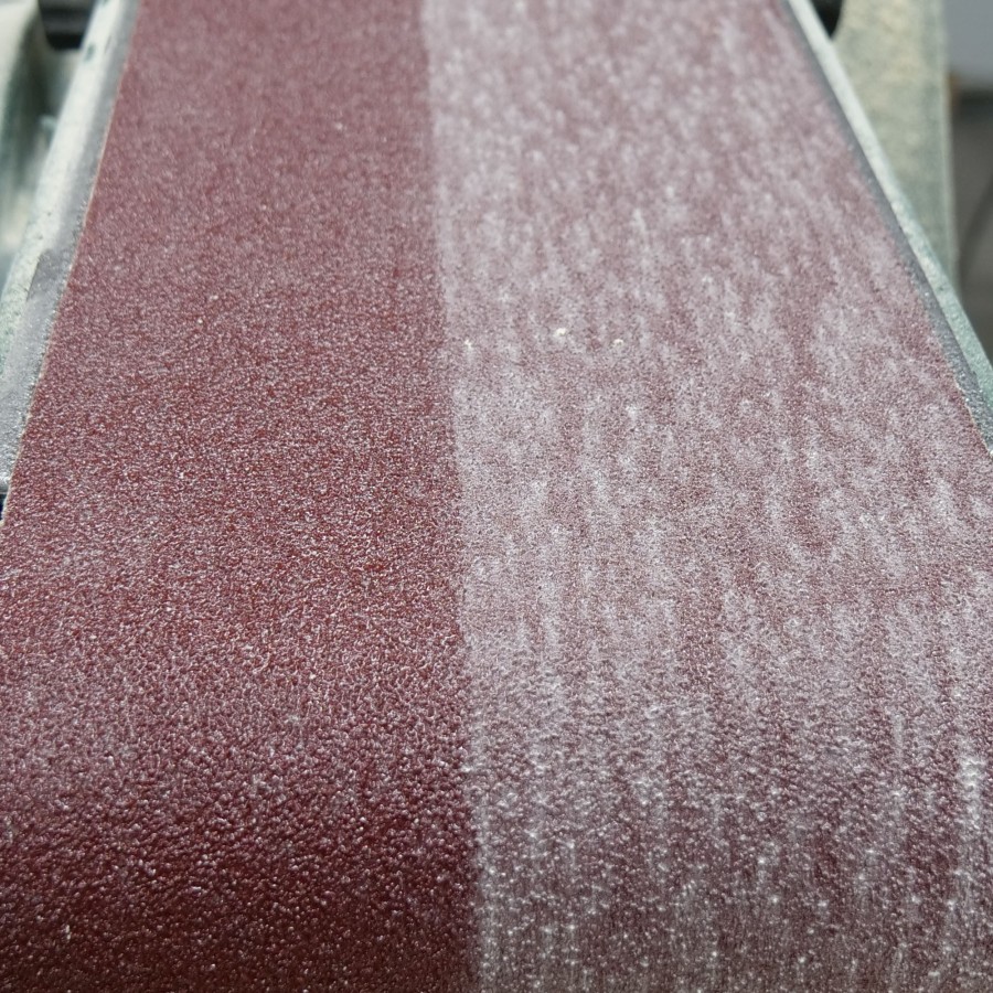 Nettes kleines Hilfsmittel, um das Schleifband oder die Schleifscheibe wieder auf Vordermann zu bringen. Geht schnell in der Anwendung und zeigt deutliche Wirkung